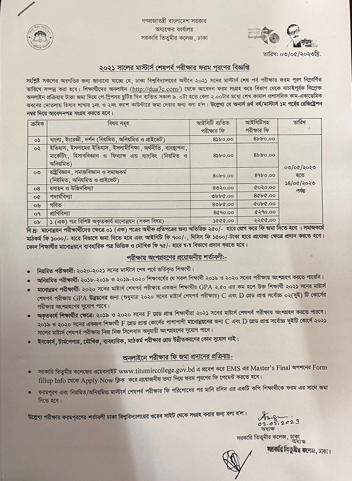 | 6 | 2023-04-05 | মাষ্টার্স শেষ পর্ব ফর্ম ফিল আপ ২০২১ | View Download |